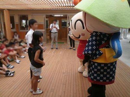 贈呈式には、南郷温泉のキャラクター「どんタロしゃん」と美郷町のキャラクター「みさとちゃん」が