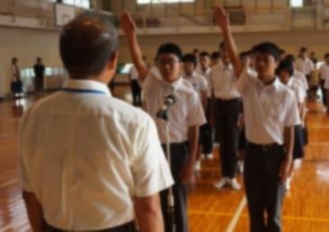 学校長の話、各部活動の決意表明、児童生徒会激励のことば、選手宣誓などを行いました。