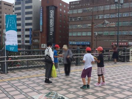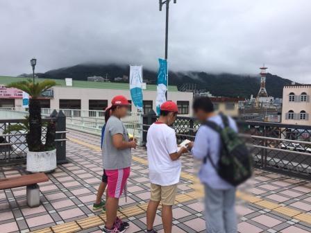 平和学習の後は、長崎駅前の歩道橋上で、美郷町のPR活動を行いました!