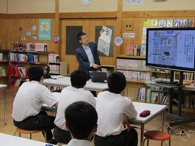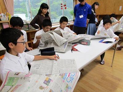 | | 今日は、宮崎日日新聞社の黒木友貴さんをお招きして、新聞についての出前授業を行っていただきました。「新聞の仕組み」「記事の書き方」「編集の方法、考え方」などを教えていただきました。今後、様々な授業で、今日、教えていただいたことを生かしながら学習してくれることを期待しています。 |