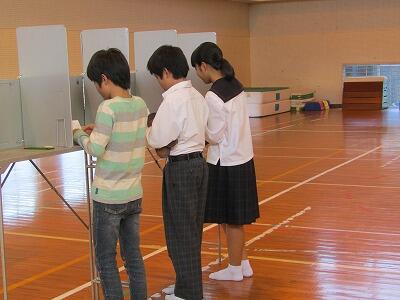 | | 今日は児童生徒会役員の立ち合い演説会と投票が行われました。5年生から9年生が参加しました。どの立候補者も堂々と自分の思いや願いを発表してくれました。とても頼もしく思いました。 |
