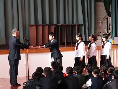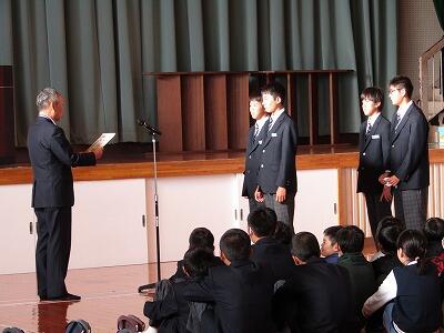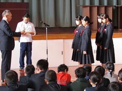 | | 中体連地区秋季大会、第48回児童・幼児動物画コンクール、第29回葉桜短歌賞の表彰が行われました。