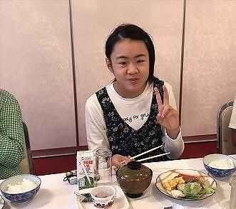 | 麦ごはん、豚肉の生姜炒め、スナップえんどうのマリネ、豆腐とあおさのスープ |