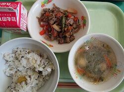 | 麦ごはん、ひじきの五目煮、石狩汁 |