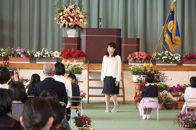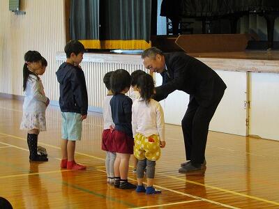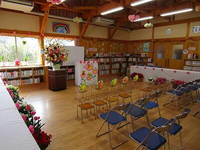 | 4月12日(金)に北郷幼稚園の入園式が行われました。本年度は5名の新入園児です。写真は式場の様子です。 |