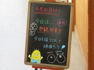 | 4月20日(土) 今日は第1回学校参観日とPTA総会が行われました。写真は7年生のウェルカムボードと8年生の授業の様子です。 |