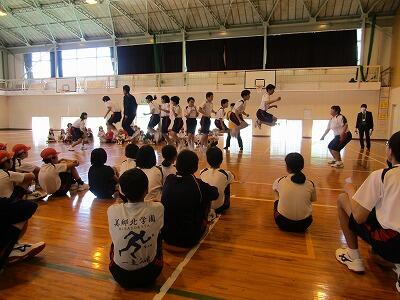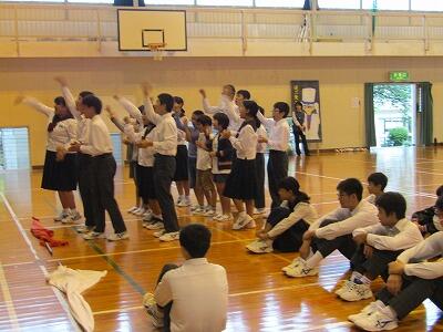 | 5月14日(火) 今日は、ブロック別集会(中後期)がありました。中期は小学5、6年生で、後期は中学生になります。赤団、白団に分かれて、歌声や応援を競い合いました。美郷北学園の運動会の成功へ向け、中後期の児童生徒が中心となり、練習から一致団結して頑張っています。 |