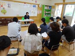 今回は、幼稚園の参観に「本の読み聞かせ」を取り入れた親子読書を実施しました。まずはじめに、子どもと保護者に分けて、保護者に北郷図書館の司書(山本恵子さん)が読み聞かせの素晴らしさと進め方を講義され、その裏で子どもには本校の読み聞かせの達人(徳田三枝 技術員)が楽しい読み聞かせをしてくださいました。