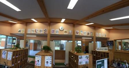 照明の関係で少し見にくいかも知れませんが、これは今年度の北郷フェスティバル(学習発表会・文化祭)のスローガンです。児童生徒会の実行委員が中心になって、各学年ごと、そして先生方に一文字ずつ書いてもらい完成させました。一文字一文字それぞれの想いが込められていて立派なスローガンになりました。