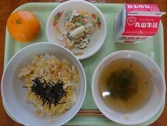 鶏飯 牛乳 千切り大根のサラダ みかん