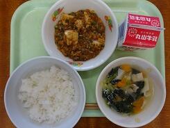 麦ごはん 牛乳 マーボー豆腐 ワンタンスープ