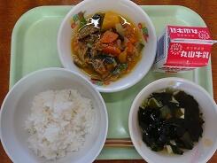 麦ごはん 牛乳 いわしのゆず煮付け わかめの酢の物 里芋の味噌汁