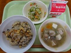 ひじきごはん 牛乳 千切り大根の酢あえ物 豚汁