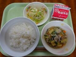 ※ 濃厚な中華丼とさっぱりしたフレンチサラダです。意外と合うコンビネーションでした。6月の給食も今日で終了です。栄養教諭の黒木先生、調理員の皆さんありがとうございました。7月もよろしくお願いします。