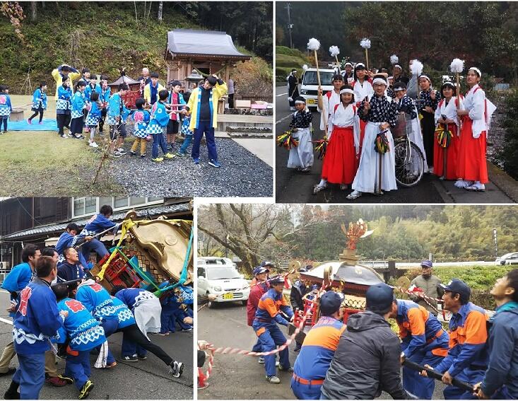 23日(土)は、宇納間神社、黒木神社の祭りでした。学園生も神輿担ぎ、舞、練りなどで祭りに参加しました。私も、神事や直会等、参加させていただきました。