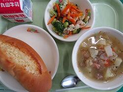 | マヨネーズパン、ポトフ、えびと花野菜のサラダ |