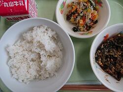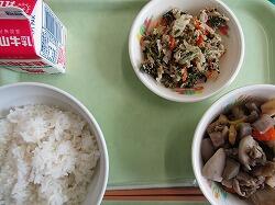 | 麦ごはん、ひじきの五目煮、石狩汁 |