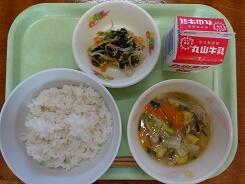 ※ 主菜の肉じゃがも副菜のもずく汁もほどよい薄味で、体にうれしい給食でした。