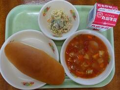 ※ 今日は洋風メニューです。様々な食を小さい頃から味わっておくことは、国際人の育成にも有意義なことです。
