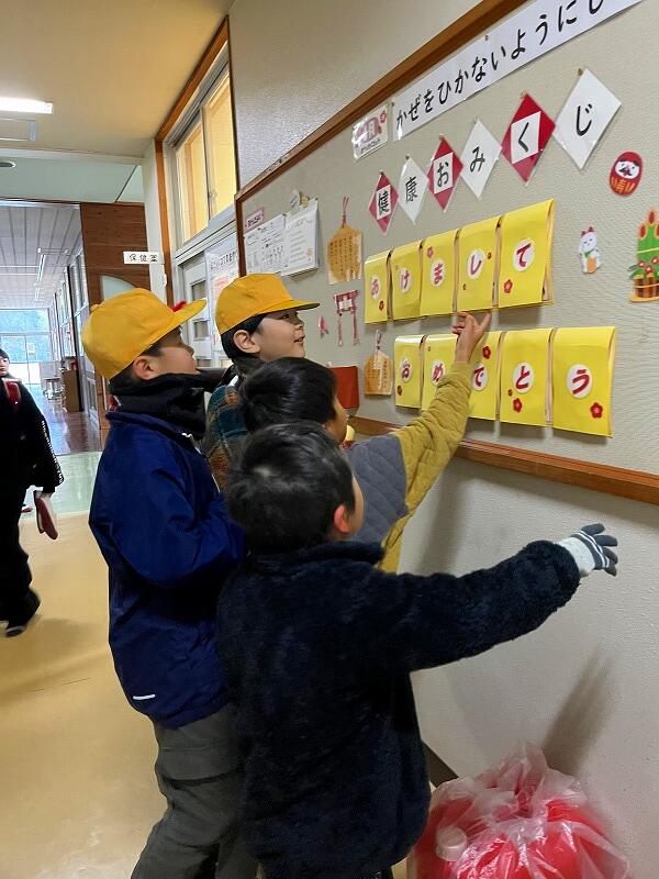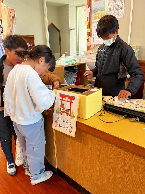 図書室では、本みくじを開催しています。本を借りるとおみくじを1回引くことができます。おみくじには、「大吉・中吉・・・」等の他、おすすめのジャンルや「しおり」「もう1冊借りられる」プレゼントなども付いています。普段から読書に親しむもろっこ達です。さらにたくさんの本を読んでほしいと思います。