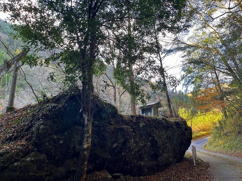 諸塚小学校から柳原(やなばる)川に沿って10キロ程行った辺りの立岩地区。透明な柳原川の水の流れを眺めながら、行くことができます。巨岩の上にある「立岩大明神」大きな岩で自然の力が感じられます。『その昔、お祭りしてご霊代が、大洪水で美々津まで流れ着き、村人が探し回ったところ、またここに戻ってきたと言われています。また、岩は昭和31年1月10日午後1時頃、大音響とともに割れて落ち、現在はその上に大明神をお祭りし、秋の大祭では御神幸祭の御旅所となっている。』そうです。川のせせらぎと木々を揺らす風の音、神社の厳かな景色が調和していてとても素敵でした。