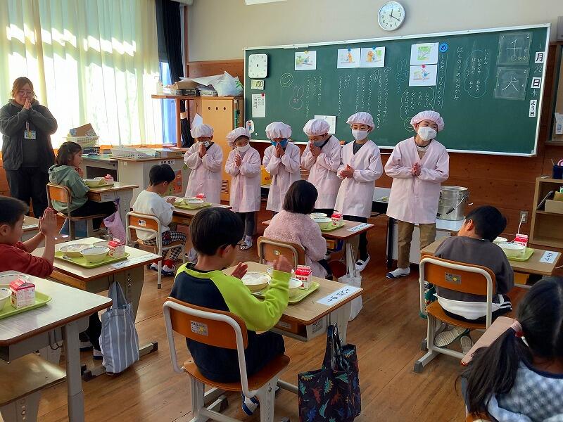 毎年1月24日~30 日が「全国学校給食週間」となっており、諸塚小学校では今週を給食感謝週間と位置づけて、給食を作って下さる方や生産者、給食に関わる全ての方への感謝の気持ちや食べ物を大切にすることについて考えています。