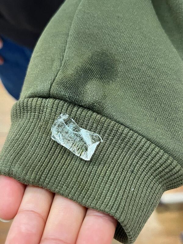 飛沫の飛距離が、せき3m、くしゃみは5mであることがテープの長さで実感できます。 |