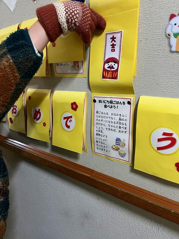 健康おみくじがあり、子ども達は、毎日のようにおみくじを引きにきます。