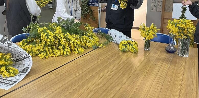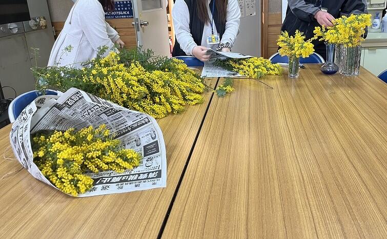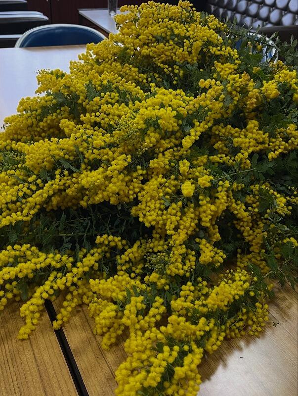 学校のご近所に住んでいらっしゃるかずこさんよりミモザをたくさん分けていただきました。教室や学校の中がミモザで彩られ、春らしく明るく、気持ちも晴れやかになります。参観日に合わせて先生方も和やかに花びんに生けていました。かずこさん、ありがとうございました。学校中がミモザの温かさに包まれています。