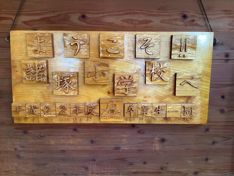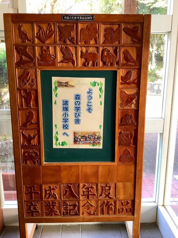 諸塚小の校内外には今までの卒業生の卒業記念製作品がたくさんあります。一人一人の氏名やイラストなども刻まれていて、たくさんの子ども達が学び巣立っていったことを感じます。中には、保護者やお兄さんの姉さんのものも見かけます。学校に来られたときに懐かしく見ていただけるのもうれしいです。大切にしていきたいと思います。