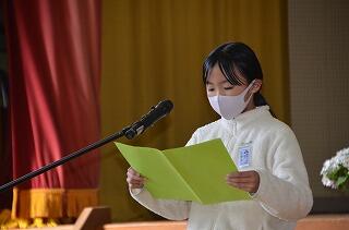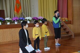 修了式後に、転校・転園で諸塚を離れるお友達が、お別れのあいさつをしました。