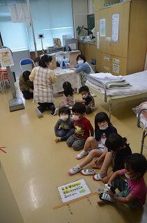 今日の保健室には、幼稚園のさくらぐみさんが、身体計測に来ていました。