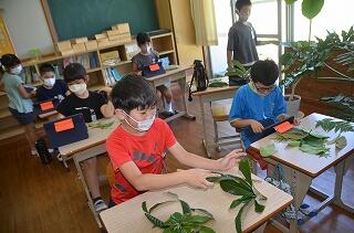 3・4年生が図工の時間に、風で揺れる作品制作に取り組みました。
