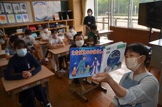 今回も、世の中の関心事や季節を感じられる本を「読み聞かせ」していただきました。