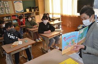 各学年に合わせた読み聞かせで、子どもたちも興味津々で目を輝かせています。