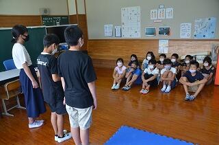 運動会を前に、5・6年生が、神楽保存会の皆さんと合同練習会をしました。