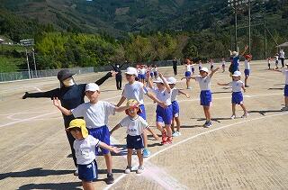 全校体育の後に、全校児童で「ハッピーバスデーツーユー」の歌を歌いました。
