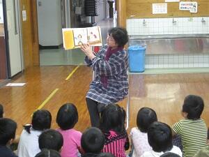 毎回、おもしろい絵本の読み聞かせがありますが、子供たちとても楽しそうに聞いていました。