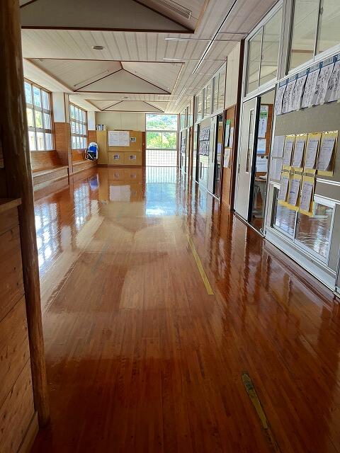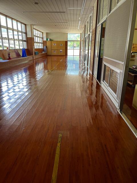 今日は、ワックスがけの2回目。廊下に出してあった机・椅子・棚などを教室に戻し、ワークスペースと図書室・多目的ホールをピカピカにしました。