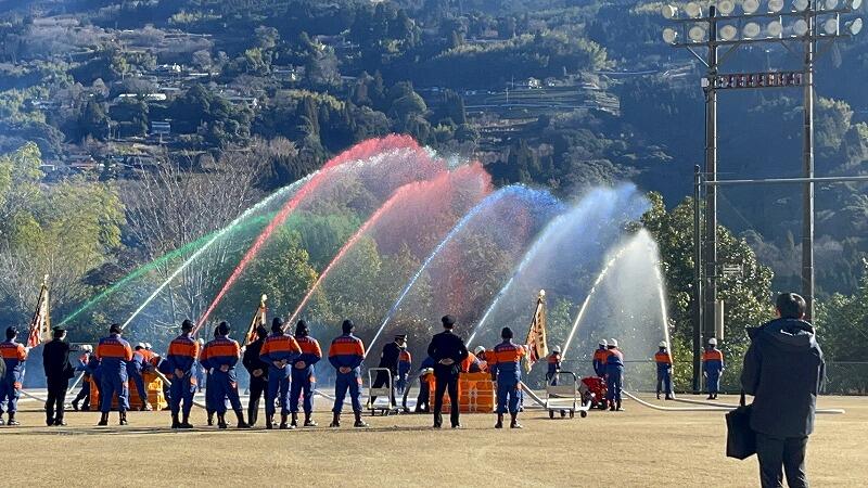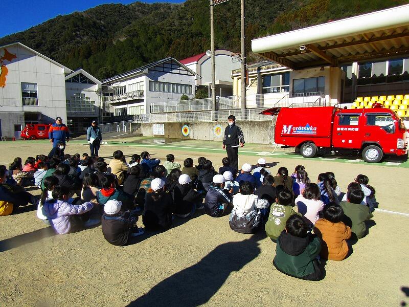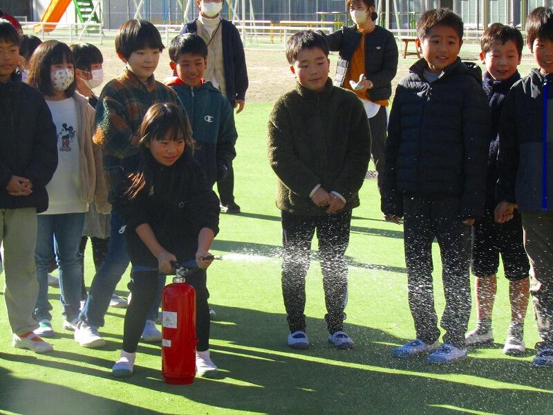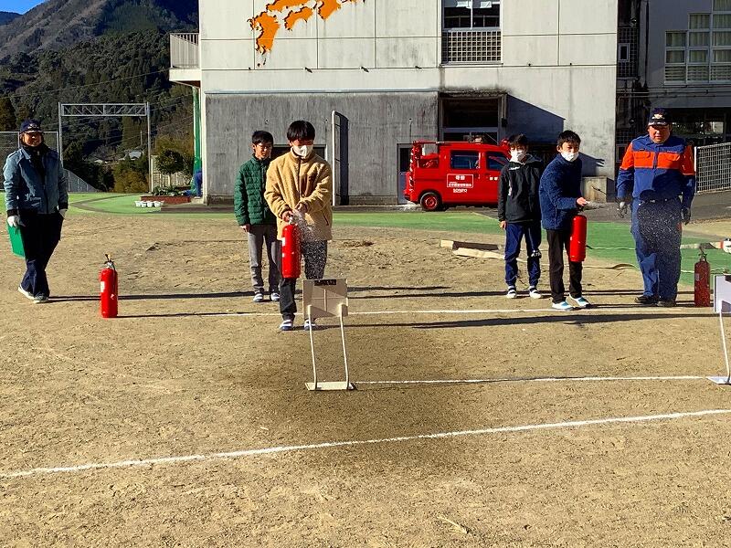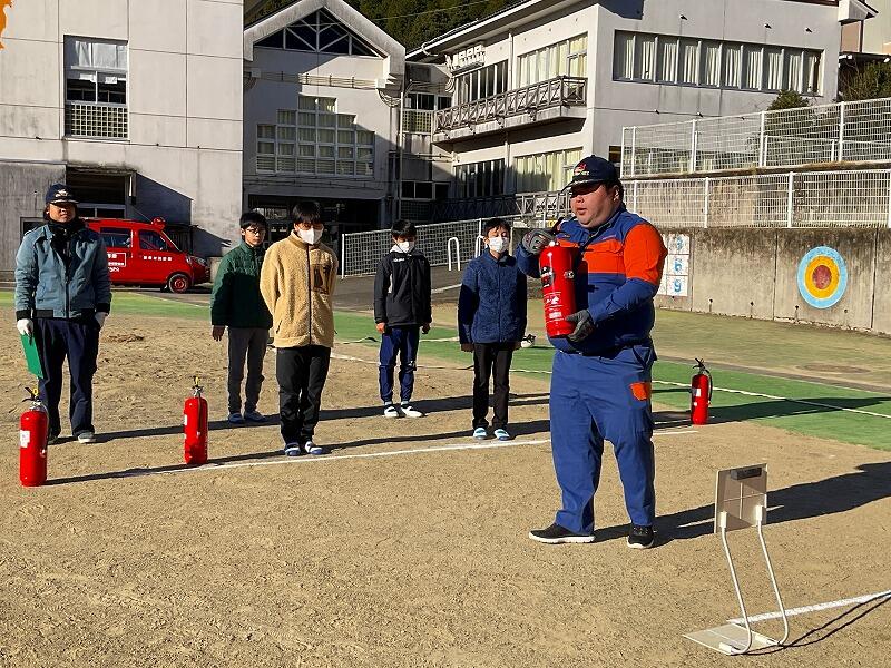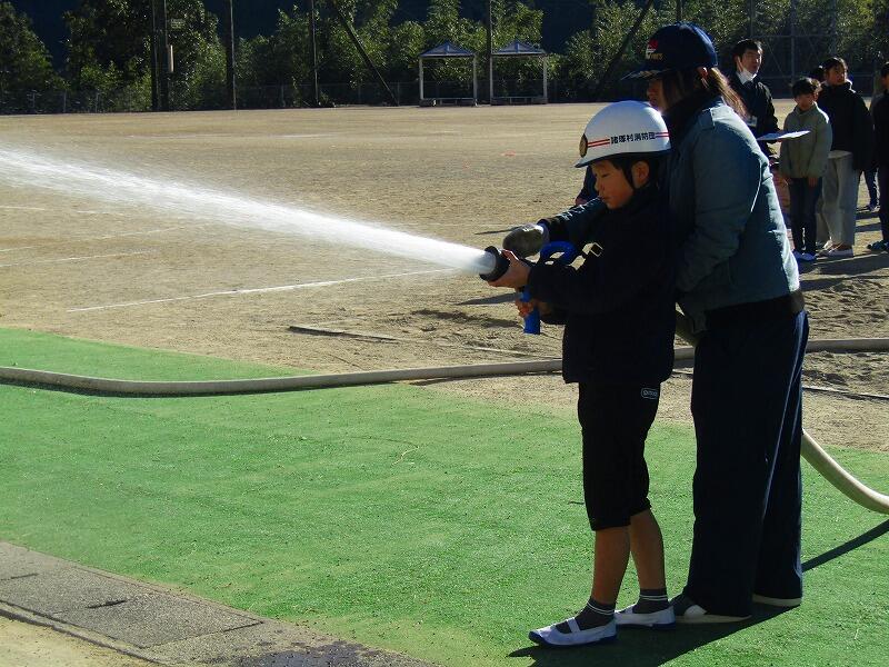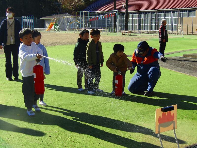 避難訓練後は、諸塚消防団のご協力の下、消化器体験と放水体験を行いました。防災意識の向上につながるのではないかと思います。