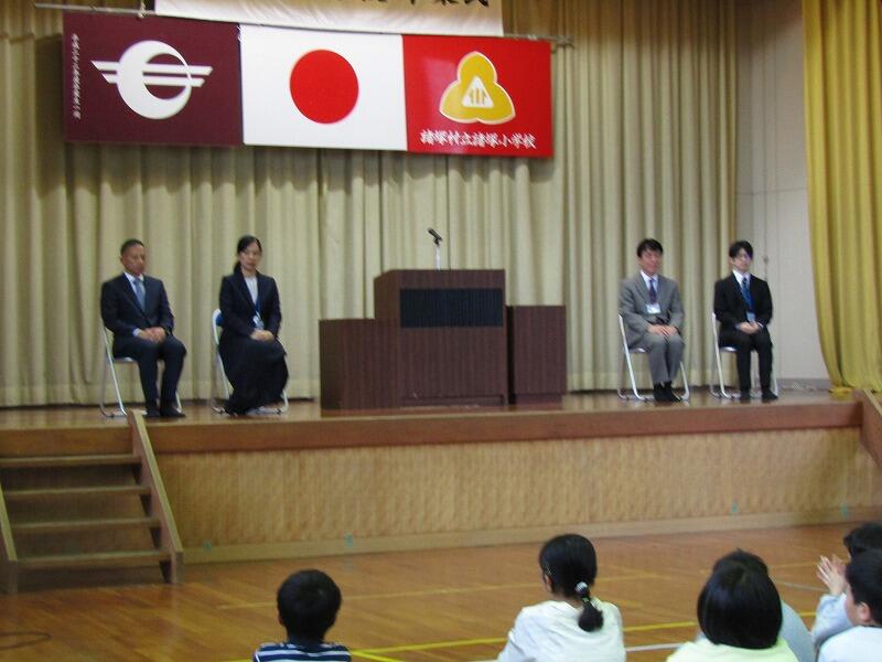 新任式では新しい教職員4名をお迎えしました。諸塚のよさについて早速たくさん見つけて下っていました。