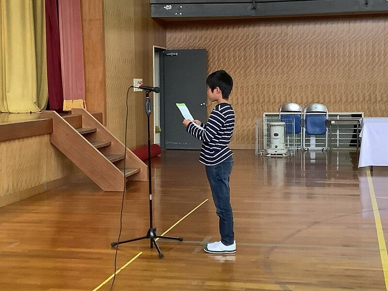 校長先生の話では「新しい一年の目標に向かって努力することについて、諸塚のクヌギのどんぐりや、しいたけのコマ打ちを例に、目に見えないところで力を蓄えることの大切さ」を伝えました。そして、「『もろつかを愛する子ども』『つよくやさしい子ども』『かんがえ伝え合う子ども』という目指す児童像を心に刻み、日々の積み重ねを大切にして大きく成長してほしい」と伝えました。