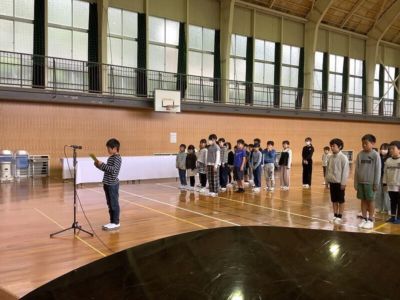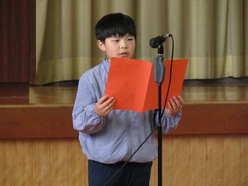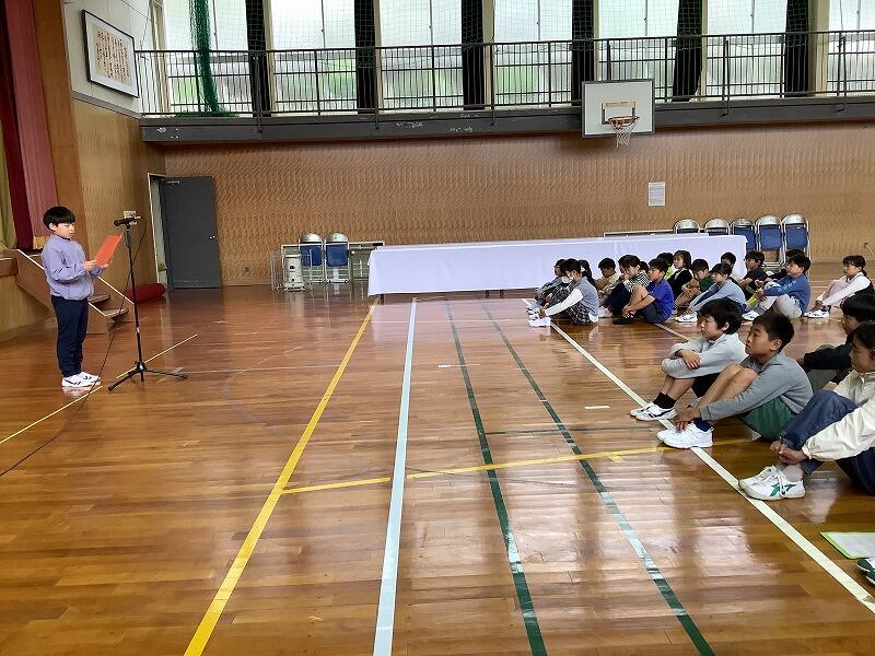 始業式では、代表の新5年生が、がんばることを「委員会」「学習」「宿泊学習」の3つを挙げ、それぞれ、「自分から進んで取り組む」「あきらめない」「協力する力」を身に付けたいと発表しました。