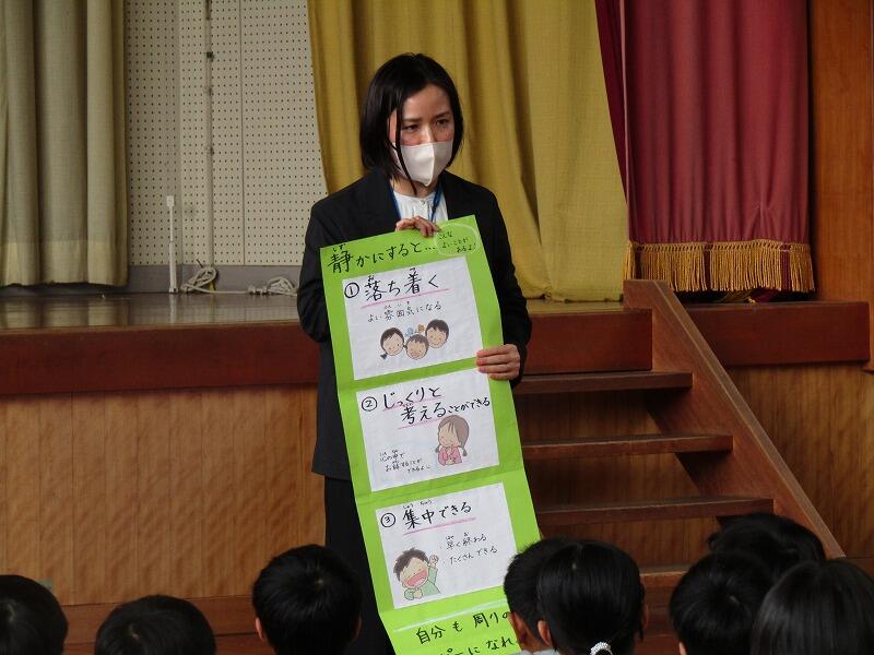 「反応して話の聞くこと」「早く寝ることの大切さ」「静かな時間を大切にすること」1学期のもろっこ目標です。