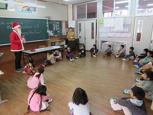 英語活動 投稿日時 : 2014/12/05 学校管理者 カテゴリ:諸塚村のこと 英語活動がありました。 12月はクリスマスというイベントもあるので、クリス先生がサンタクロースになって、クリスマスの歌を教えてくれました。また、クリスマスの歌を歌いながら、楽しくゲームをすることができました。