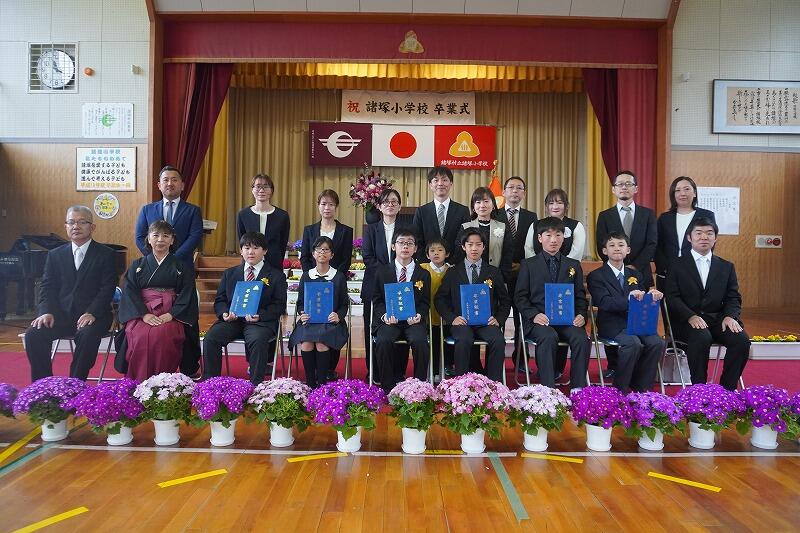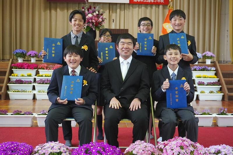 1~5年生、おうちの方々、地域の皆様、先生方に見守れながら、6名の6年生が卒業をしました。やさしさと明るさで学校を支えてきた6年生。式辞では「点と点はあとからつながる」という言葉を贈りました。これまでの経験や思い出が、これからの歩みを支える力となります。ふるさと諸塚への思いを胸に、それぞれの道へ大きく羽ばたいていくことを願っています。卒業おめでとうございます。