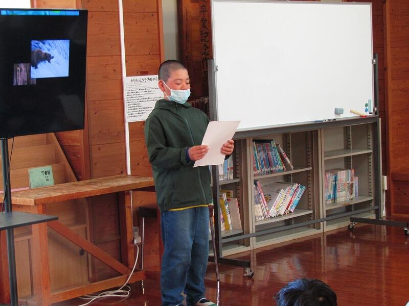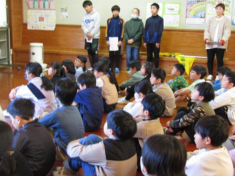 諸塚小学校で取り組んでいる「みどりの少年団」活動の1年間を振り返る解団式を行いました。4月の結団式で話した「やさしい心」「力をあわせること」「ありがとう」の心が育ちましたか?と問いかけました。日々のお世話や季節毎の活動に一生懸命取り組みました。