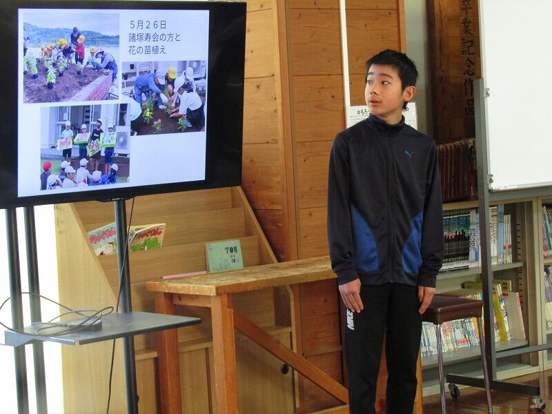生活美化委員会の子ども達が1年間の活動のふりかえりも行いました。