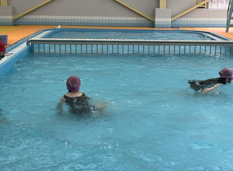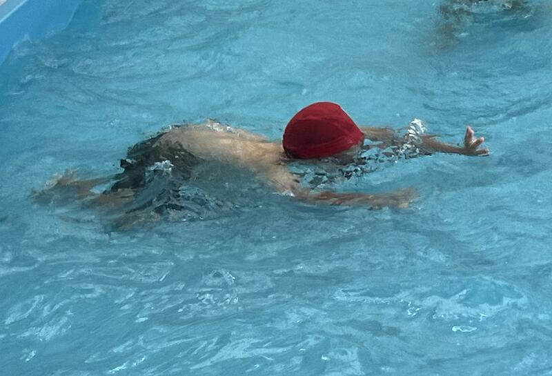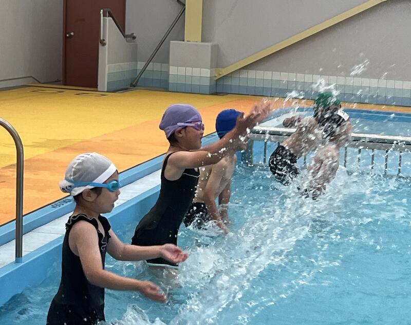 1・2年生は小プールで、「水遊び」をしています。水に慣れながら、水への不安感を取り除き、水の中を移動すること、もぐったり浮いたりすることの心地よさや楽しさをあじわうことができることが目標です。お友達と水のかけあいっこをしたり、水中のボールなどを拾ったりする運動遊びを楽しんでいる様子が見られました。