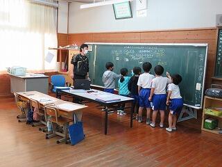 1年生の教室では、一人の男の子が前に出て発表していました。